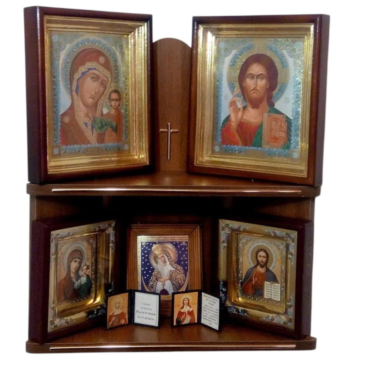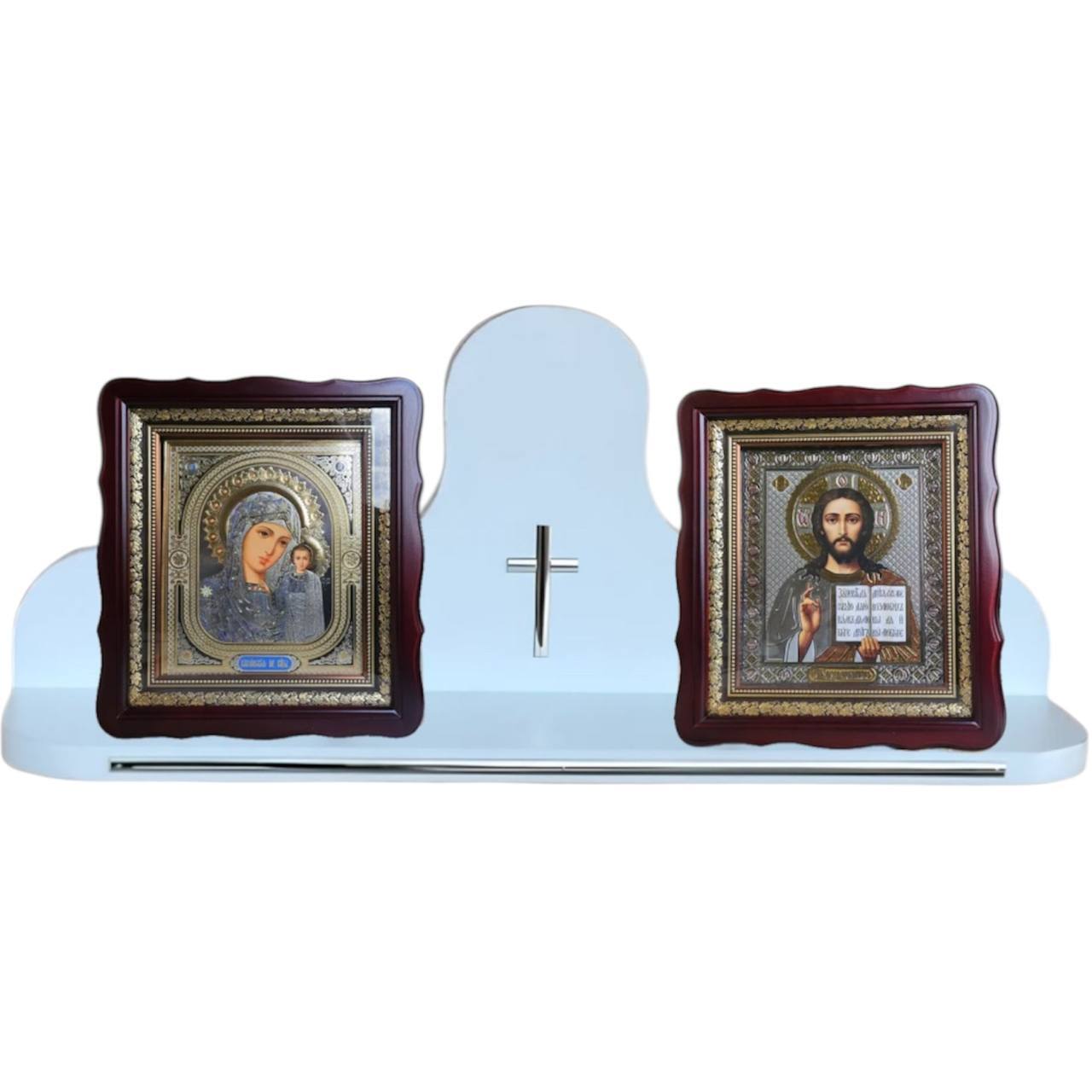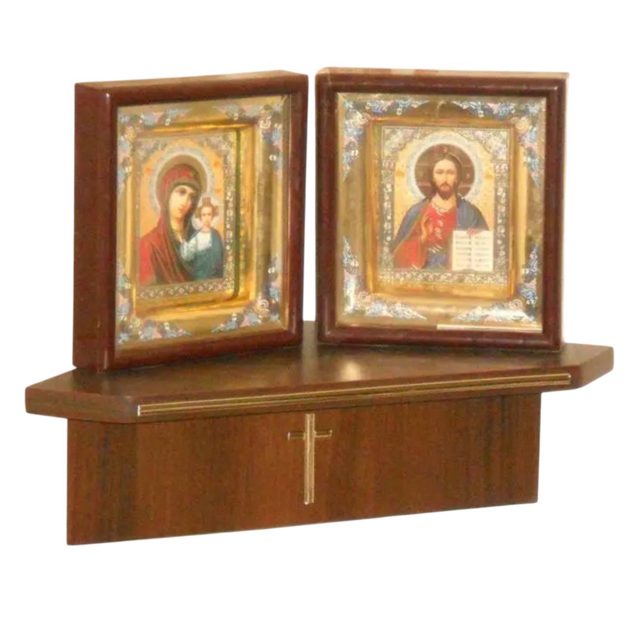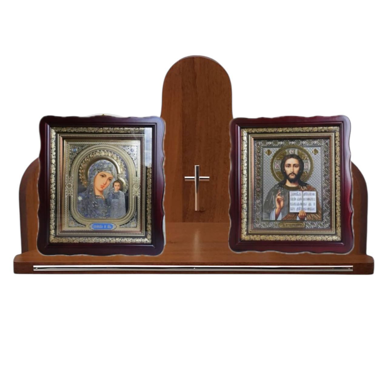 ✔️Двоярусна зручність: Наявність двох ярусів дозволяє зручно розмістити кілька ікон різних розмірів, лампадок, свічок або інших релігійних атрибутів. Ви можете створити красиву композицію, розташувавши головні ікони на верхньому ярусі, а додаткові – на нижньому