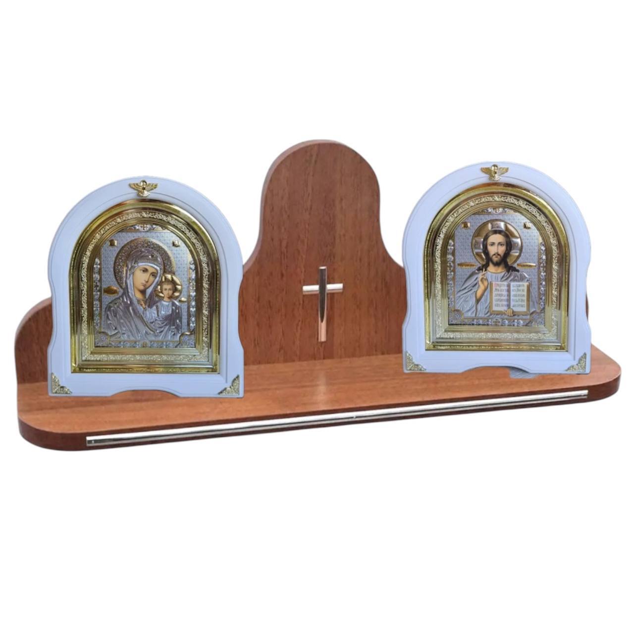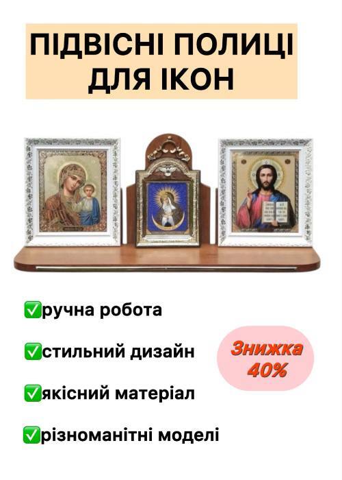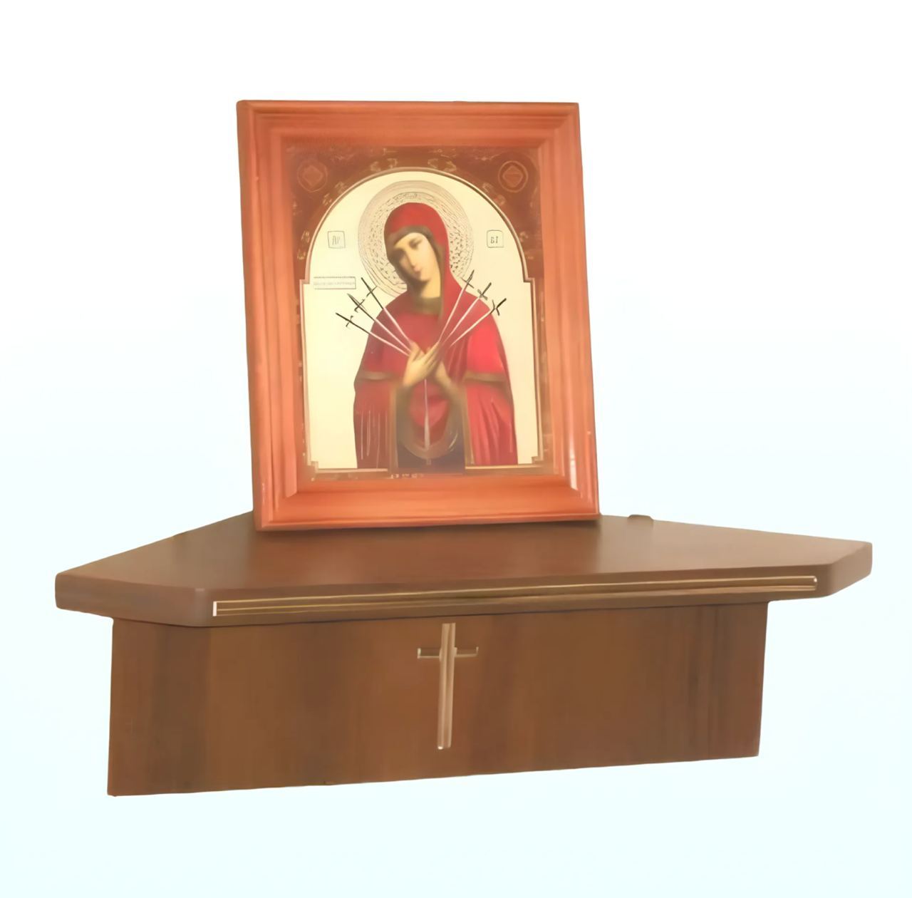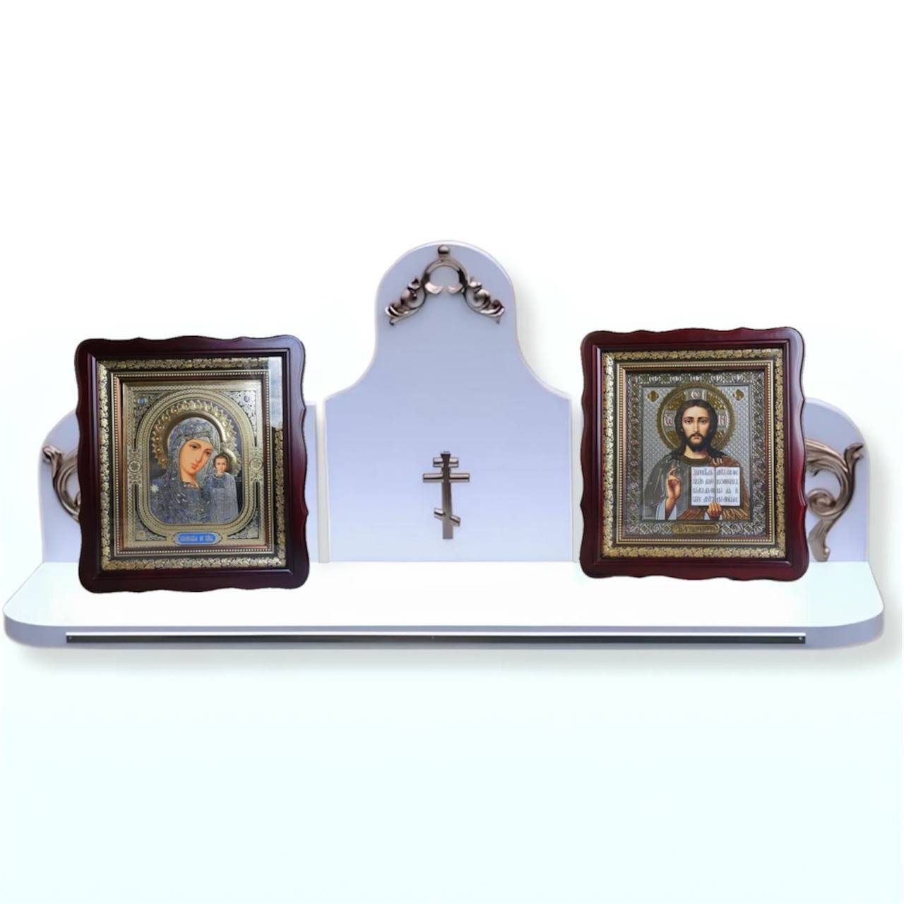 ✔️ Універсальний дизайн: Нейтральний та класичний дизайн полиці дозволяє їй гармонійно вписатися в будь-який стиль інтер'єру, від традиційного до сучасного. Вона не відволікає увагу від ікон, а навпаки – підкреслює їхню значущість та красу.