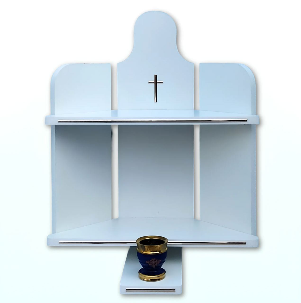 ✔️Елегантний білий колір: Чистий білий колір полиці надає їй світлого та урочистого вигляду. Він легко інтегрується в будь-який інтер'єр – від традиційного до сучасного, створюючи атмосферу спокою, чистоти та благодаті, яка не відволікає від святинь.