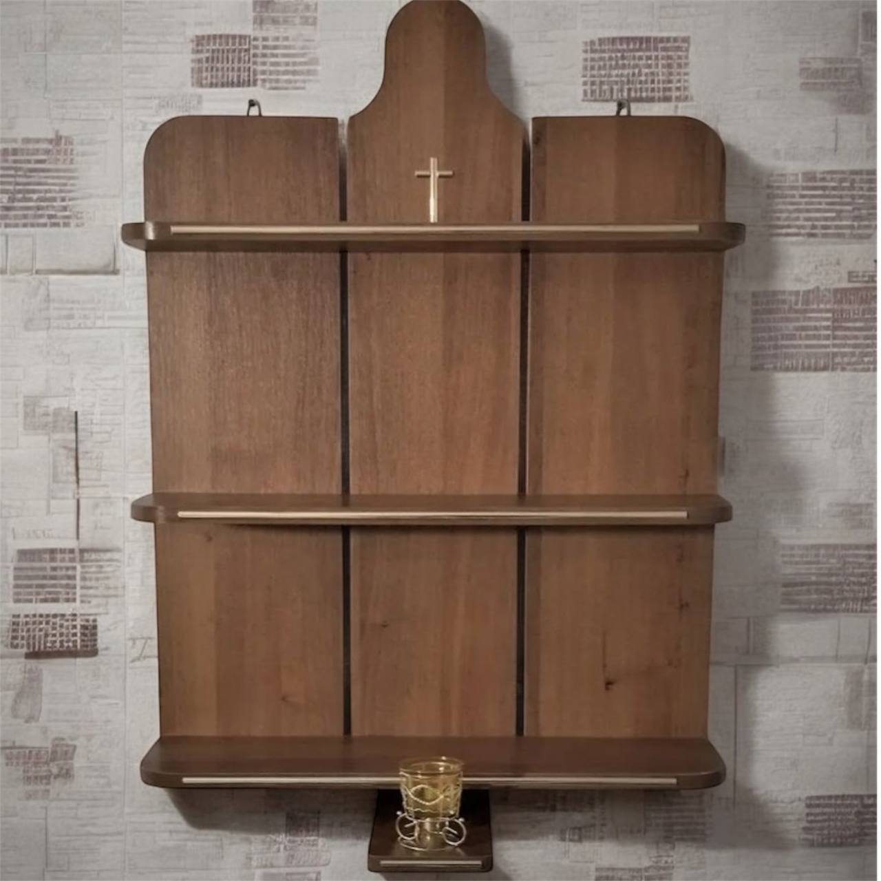 ✔️Простора 3-ярусна конструкція: Три яруси полиці забезпечують достатньо місця для розміщення кількох ікон різних розмірів, лампадок, свічок, святих писань або інших релігійних атрибутів. Це дозволяє створити багатогранний і упорядкований простір для поклоніння.