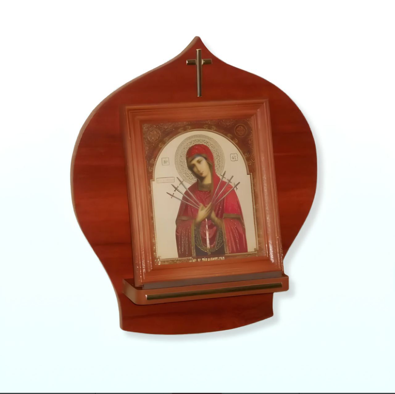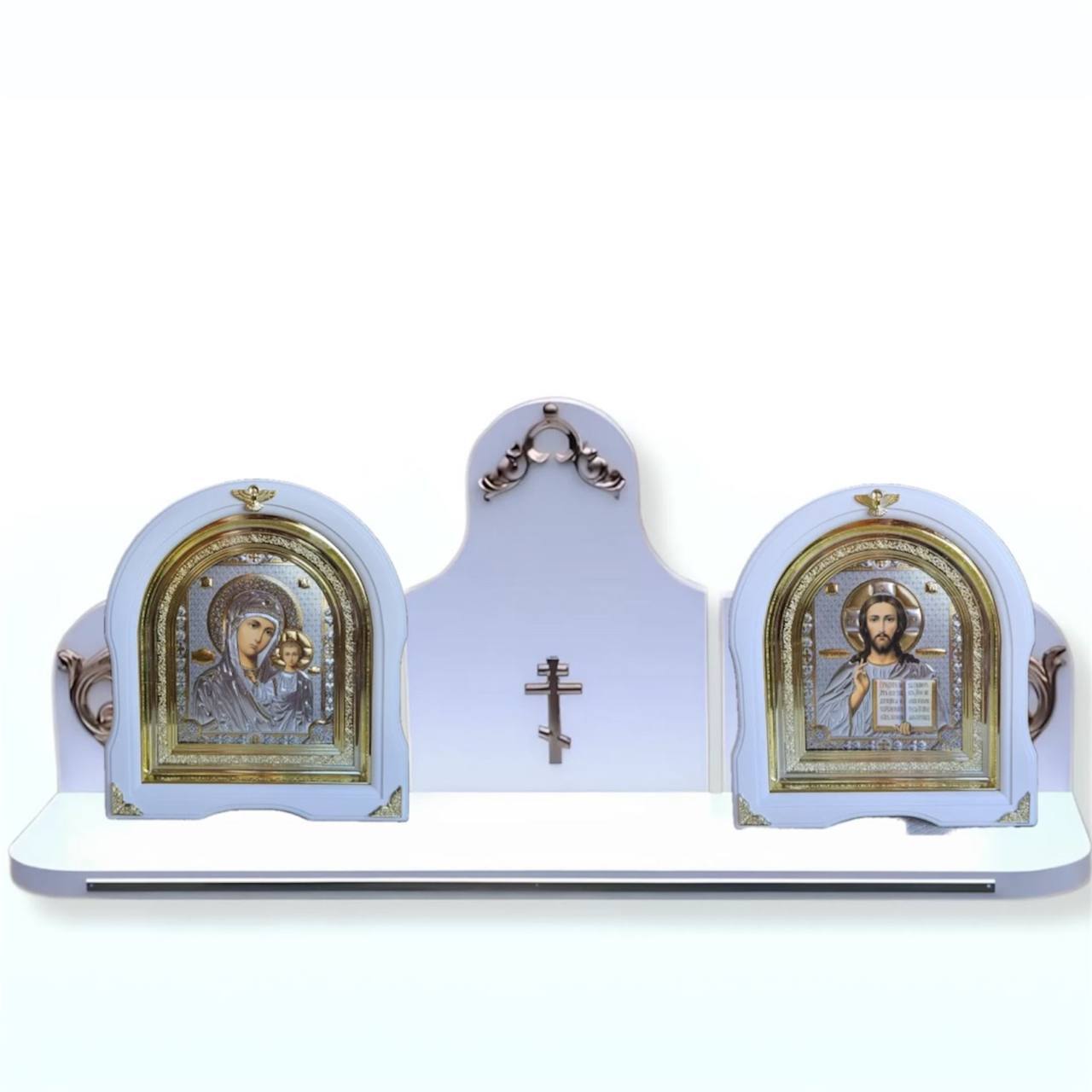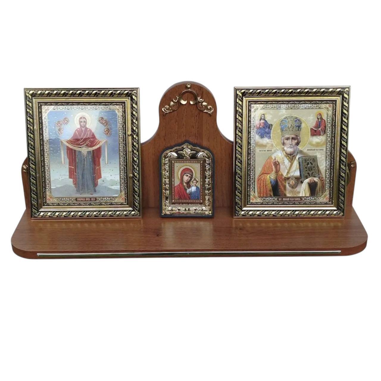 ✔️ Універсальний дизайн: Нейтральний та класичний дизайн полиці дозволяє їй гармонійно вписатися в будь-який стиль інтер'єру, від традиційного до сучасного. Вона не відволікає увагу від ікон, а навпаки – підкреслює їхню значущість та красу.