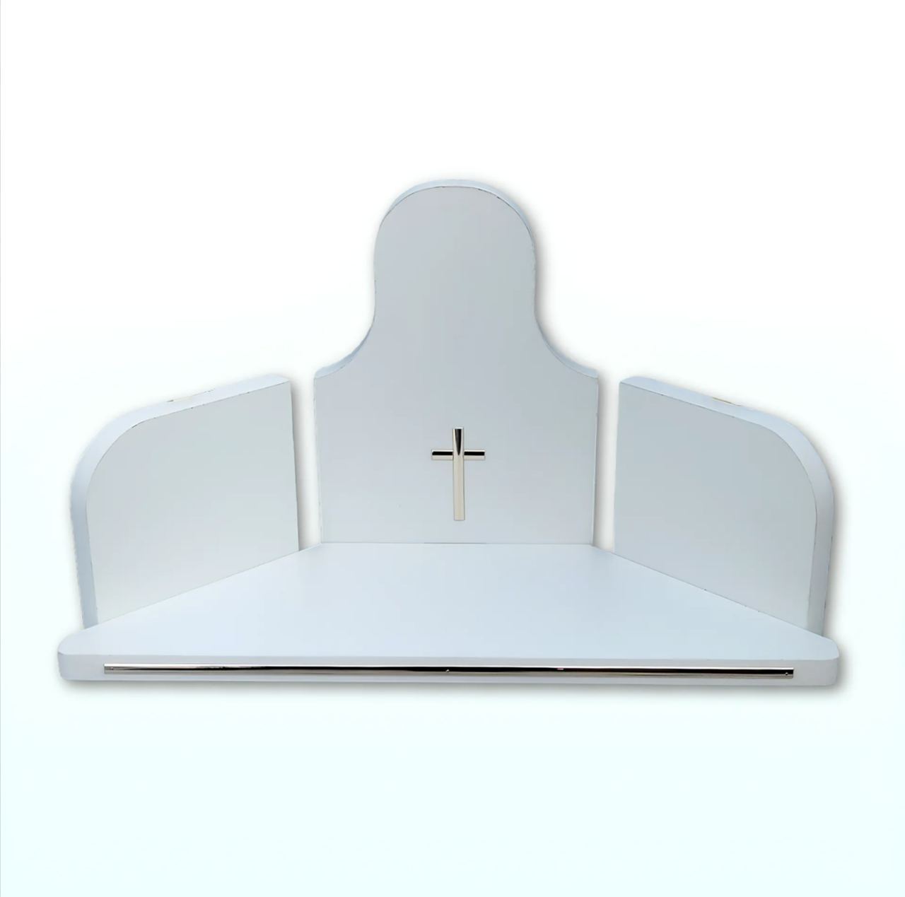 ✔️Елегантний білий колір: Чистий білий колір полиці надає їй світлого та урочистого вигляду. Він легко інтегрується в будь-який інтер'єр – від традиційного до сучасного, створюючи атмосферу спокою, чистоти та благодаті, яка не відволікає від святинь.